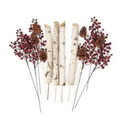 - Includes: Fraser fir, white pine, western cedar, 6 natural ponderosa pinecones, 6 faux berry embellishments (57 count bicoloured), 2 white birch poles, 20-in length