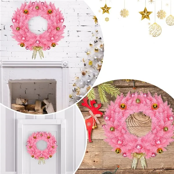 Costway 24-in Indoor/Outdoor Pink Ornament Artificial Christmas Wreath