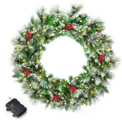 Costway 24-in Pre-Lit Indoor/Outdoor Battery-Operated Green Ornament Artificial Christmas Wreath With Warm White LED