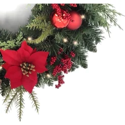 Holiday Living Christmas Wreath Poinsettia LED Battery-Operated 24-in