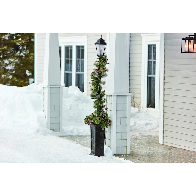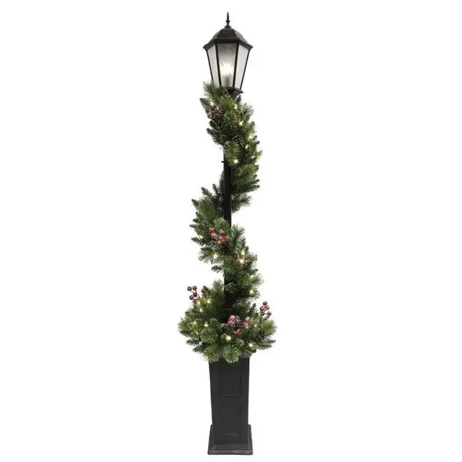 - 7-Ft pre-lit artificial Christmas lamp post with greenery makes it easy to enhance your holiday decor