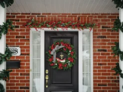 Holiday Living Indoor Artificial Christmas Wreath Warm White LED Poinsettia And Ribbon 30-in