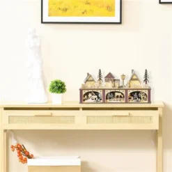 Decorate your house for the holiday with this small Christmas village from HOMCOM. Features snow-covered village with three houses, a post light, two trees, a forest with deer inside, and more, which can bring you into a vivid village world. The built-in lights add the charming and romantic feel. Use this Christmas village table display to decorate the entry table, desk, or fireplace in the Christmas spirit.