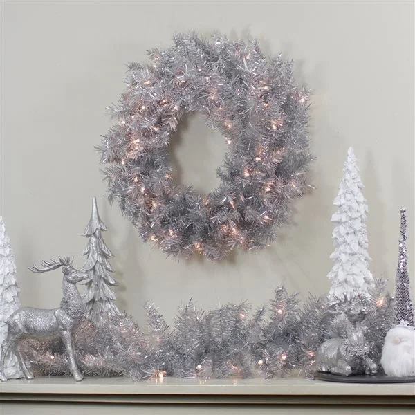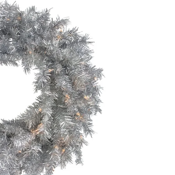 Northlight 24-in Silver Tinsel Artificial Christmas Wreath – Clear Lights