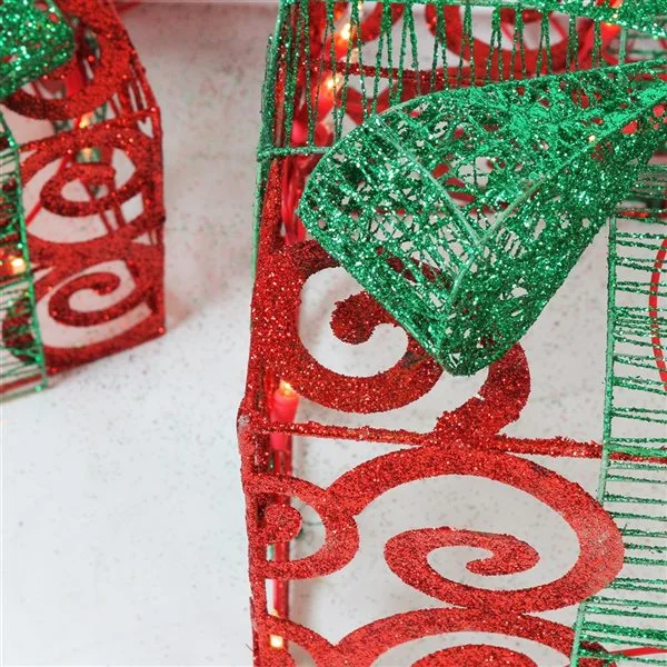 - Lighted red swirl Christmas gift boxes outdoor decoration set