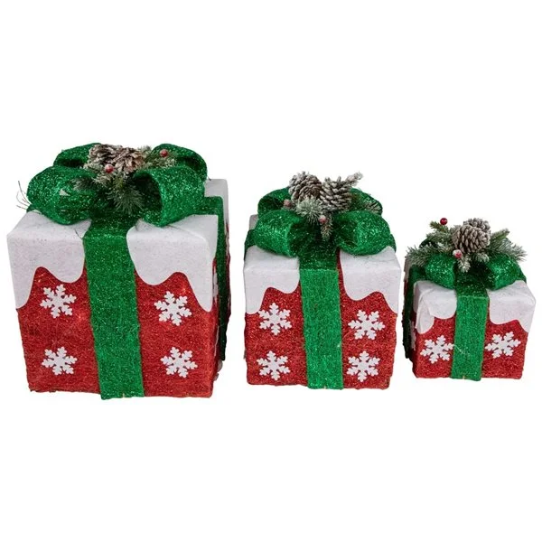 Northlight Set Of 3 12-in Snowflakes Gift Boxes Christmas Decoration With Lights