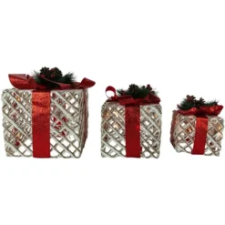 Northlight Set Of 3 18-in Freestanding Red Gift Boxes Christmas Decor With Lights