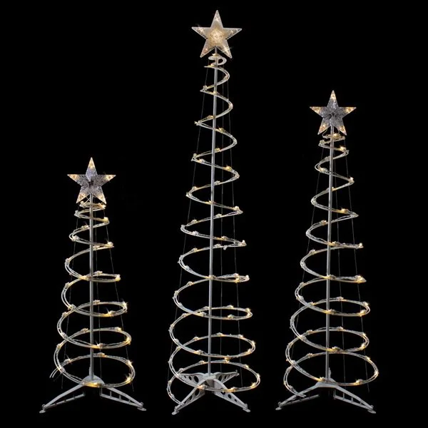 Northlight Set Of 3 Outdoor Spiral Christmas Trees With Warm White LED Lights- 3-ft – 4-ft – 6-ft