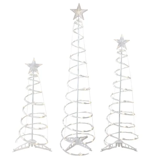 - 3 white spiral Christmas trees outdoor yard decorations