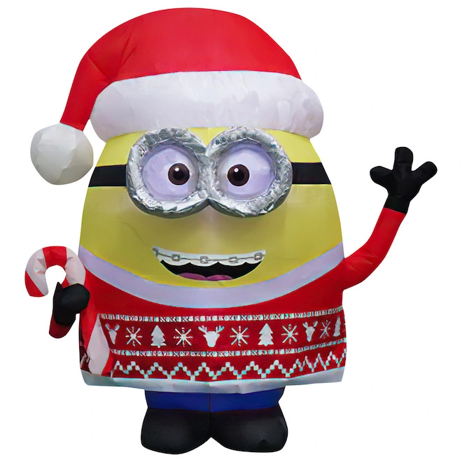 - 3.5-ft x 3.4-ft Indoor/Outdoor Inflatable Minion Otto in Santa Hat and Ugly Sweater makes a delightful addition to your Christmas decorations