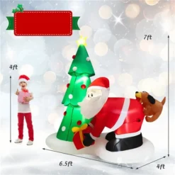 Costway 7-ft H Lighted Inflatable Christmas Tree With Santa Claus Chased By Dog